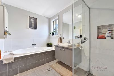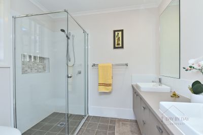 The large master bedroom is complemented by a large ensuite with dual basins and fitted out walk in robe. The remaining bedrooms are good in size with built in robes and ceiling fans. The main bathroom stylish and complete with a bath.